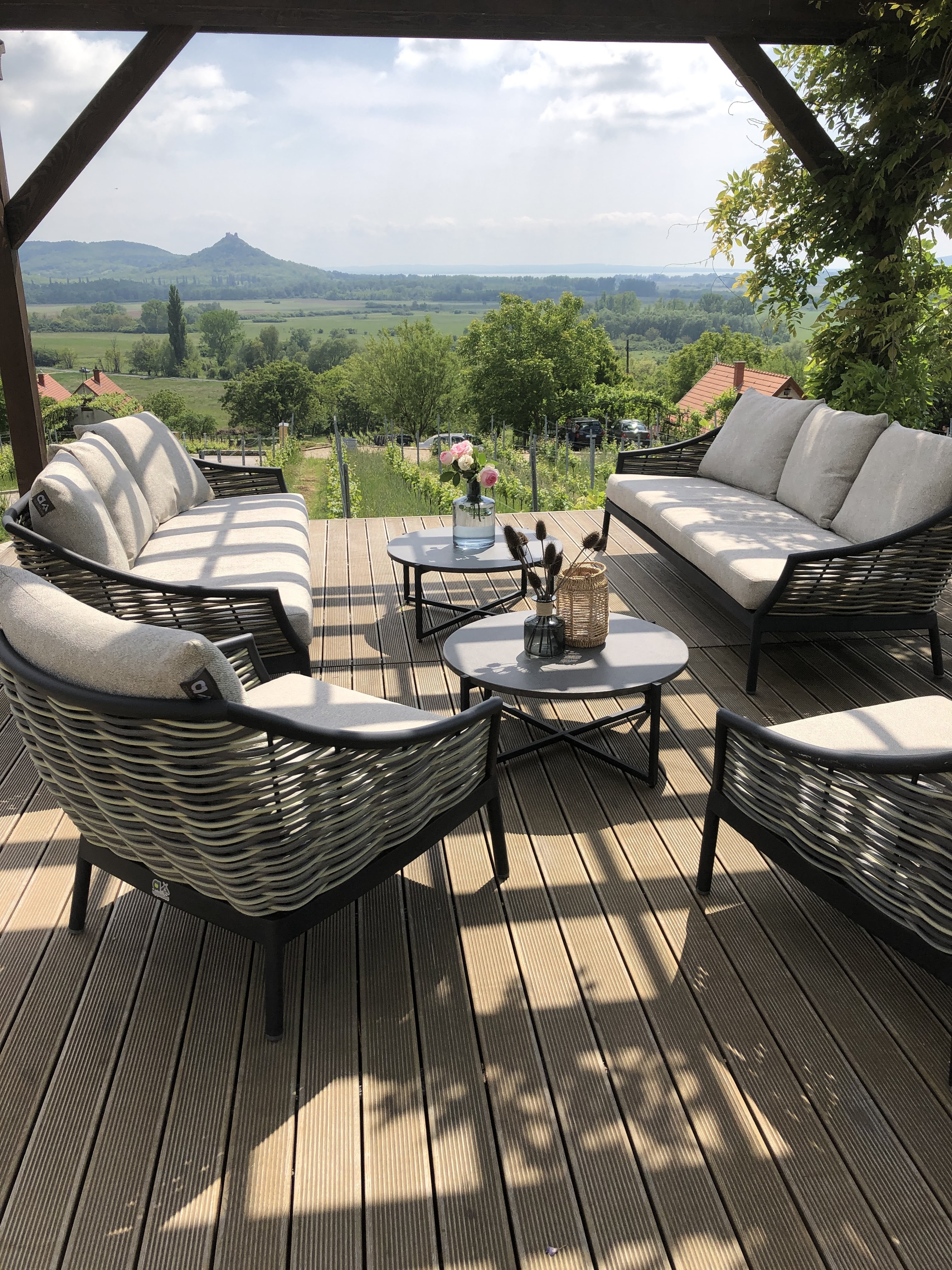 It was harvest time on the hill and Nyári Pince was in full swing. Their Chardonnay, Háslevelű and Cserszegi Fűszeres are among my favourites, but that being said, I haven’t tasted one of their wines that I do not favour. Their tasting room features a beautiful covered terrace that overlooks the hill and has stunning views of Lake Balaton. It is not difficult to see that the family works very hard diligently caring for the property and produce that the Grandfather purchased and planted.