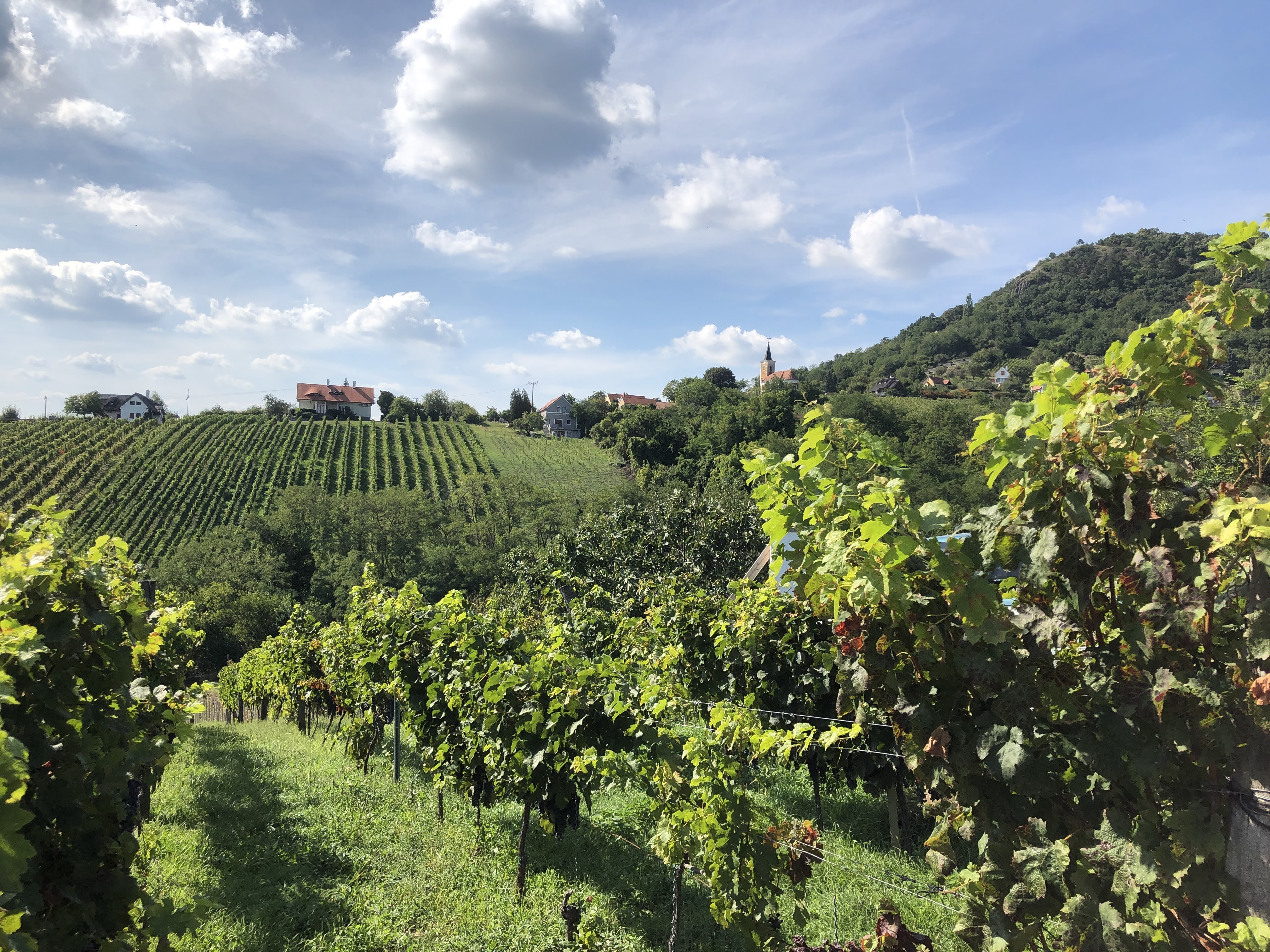 It is serene but never silent. It is a labour intensive way of life on this hill. There is always the brrr of a chainsaw, the pounding of a hammer, the slap of mortar on bricks, a hoe picking its way through weeds, or a mower running between the vines and even an ice cream tricycle that plays that old familiar earworm. The labour that puts vino in our glasses, though, is silent. The grapes are harvested by hand and pressed in présházak (press houses) owned and operated by families that cherish their land and take pride in their produce. The tasting rooms are inviting and generally smallish because the wines are best when they are enhanced with the view that their teraszok (terraces) provide. There were old family vineyards, although the communists took much of the land and most have started again from nothing, others are young dreamers who love the lifestyle of agriculture and want to bring their ideas about wine to fruition.
