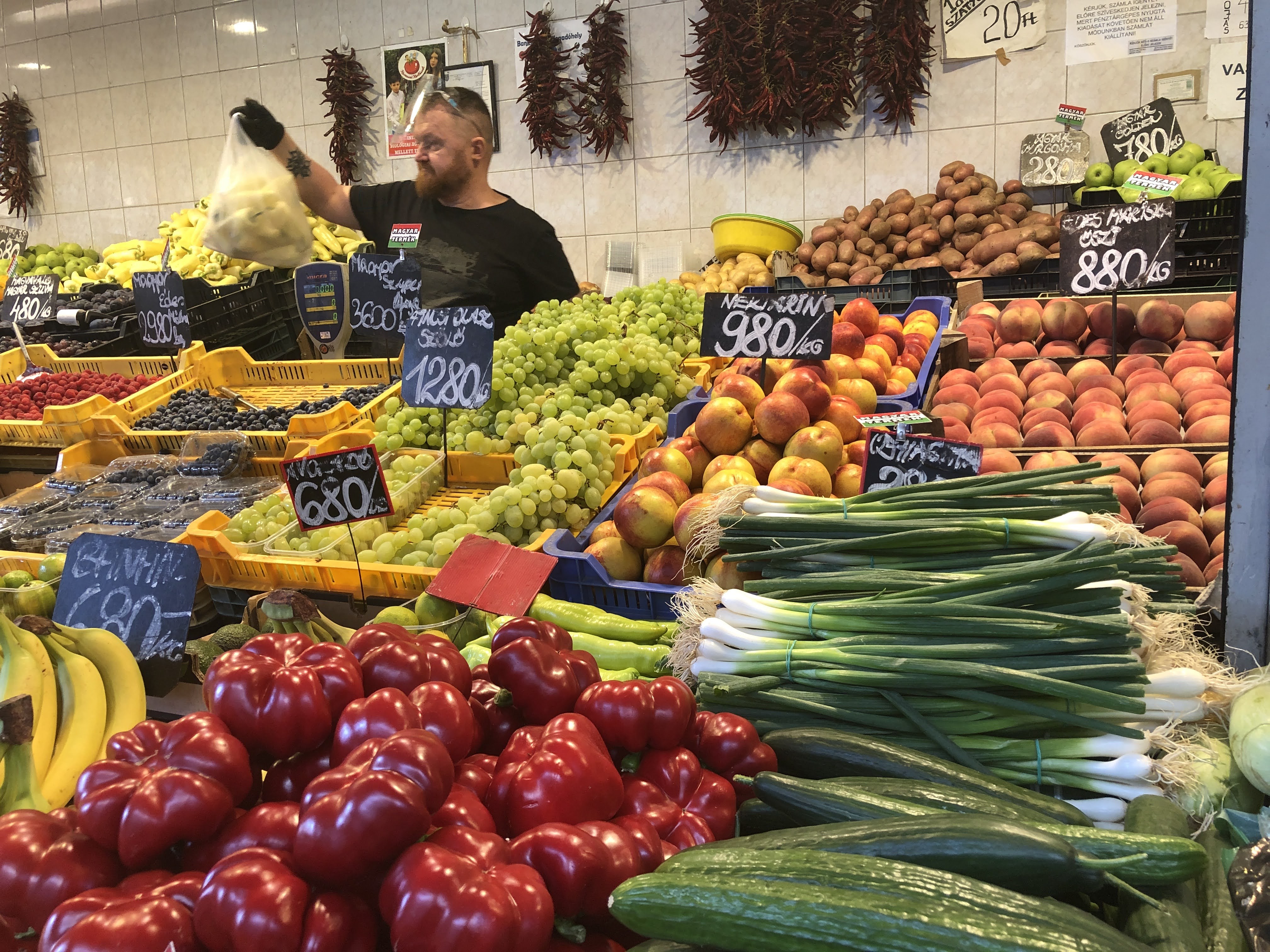 My neighbourhood market is full of excitement for me. Every week has a new product, I am always eager to find out what’s in season, what has been imported from other European countries, and what new fruit or vegetable can I try. Not everything is familiar to me, but then again some of what is familiar I cannot find. So I enjoy my animated game of charades with the vendors as I try to find out flavour profiles and preparation methods and particular cuts of meat. There are animal noises and touching particular parts of the my body as I try to describe, pork belly or cheeks, chicken thighs…I think you get the picture! But they must enjoy it too as we often conclude our encounters with giggles or laughter or sometimes just a shake of the head and I’m sure when my back is turned, an eyeball roll. My non-existent Hungarian language capabilities annoy me but I am rarely treated with anything other than kindness and generosity. Of course I have my favourite vendors, those who I know will help me find what I’m looking for, or who have consistent products, or whose personalities I really click with. And there are those I stay away from. My hand has been slapped when I mindlessly picked up a product to look at it for quality. I’ve been charged more than double what I should have been and I did not have the language to rebuke (after that encounter, my Spanish friend told me that shouting isn’t any particular language!).