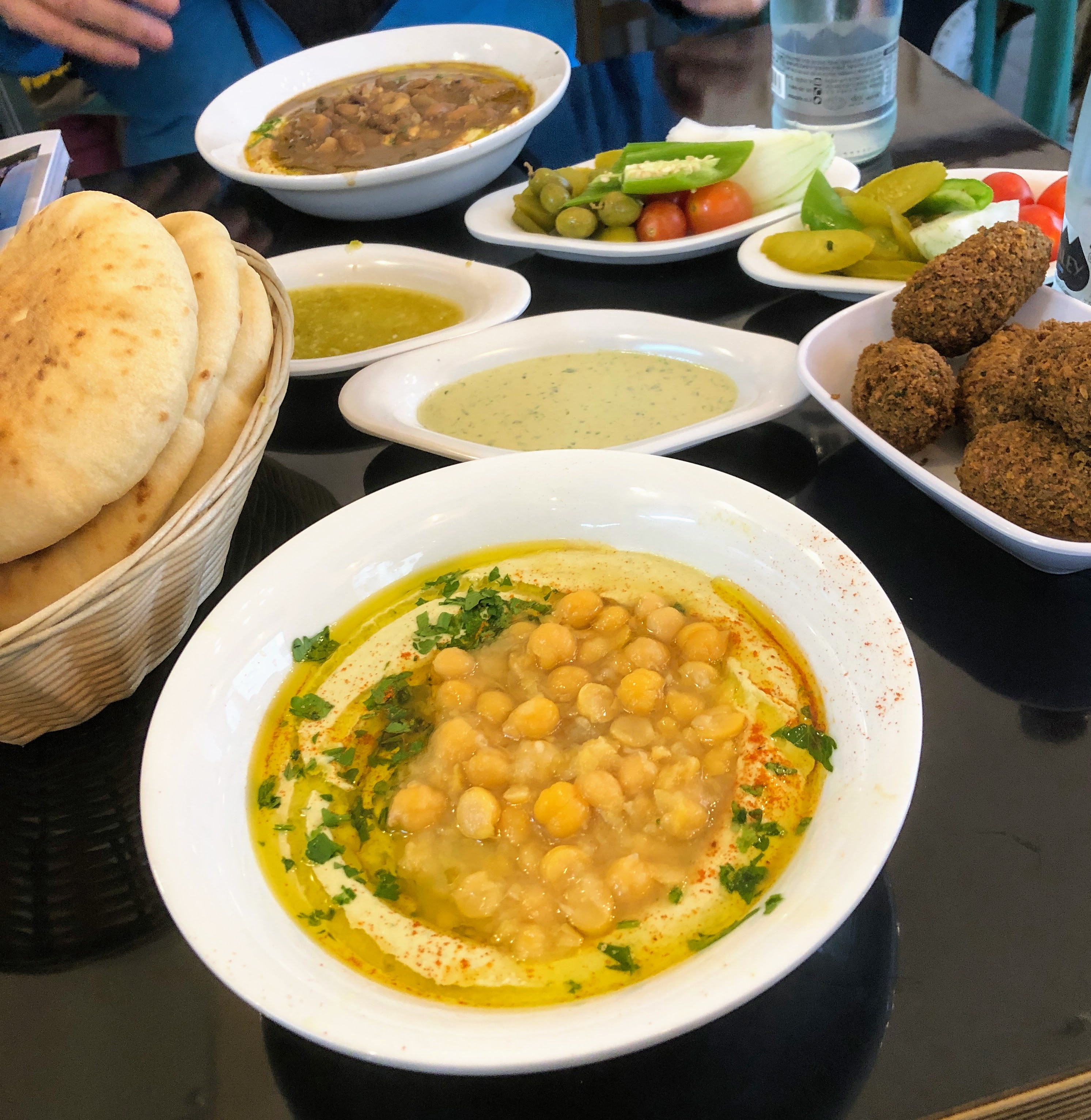This trip was about Jerusalem, there wasn’t time to explore much else, and really our only plan was to feel the city. The Holy City has an energy and vibe that is unparalleled. There are definitely cities that hum with historical energy but the layers (literally) of Jerusalem coupled with the tension due to the significance of this place to various faiths and creates a constant tingling of energy. We wanted to see so many places; Mount of Olives, Garden of Gethsemane, City of David, Mount Zion, the Western Wall, the East Gate, the Garden Tomb, The Dome of the Rock and much more, but in many ways it was de ja vu because all of the names and sights are imprinted upon my mind from 54 years of reading and hearing about and watching this city in church, books, television and news teases you into thinking you have been there before. Even the food. I remember the first time I tasted falafel and hummus 34 years ago. I was hooked. But nothing could have prepared me for the sensory experience of walking into the city from the bus station, passing through neighbourhoods, listening to chatter all along the sidewalks as friends sat and philophized over an afternoon coffee. Eating on and in the land where the produce is grown and the spices are mixed, where the recipes are passed down not written out is a spiritual experience. There is a connection that is not felt in a bistro in another land, although I most certainly had a friendly rapport with the lady that handed me my falafel twice a week for many years. The buzz increased in volume as we approached a market, the scent of zatar was mixed with all the fruits and vegetables and fresh Jerusalem bagels only added to my excitement and all of a sudden it was time. Time to sit and indulge in a lunch of falafel and hummus. My palate was zinging with the flavours and I could not believe that I was here. In Jerusalem, a city of cultures, religions, foods, arts, languages and peoples from all around the globe. A city that so many claim as their own and yet it can not be defined by any one. Even the humble chickpea and sesame seed can become political.