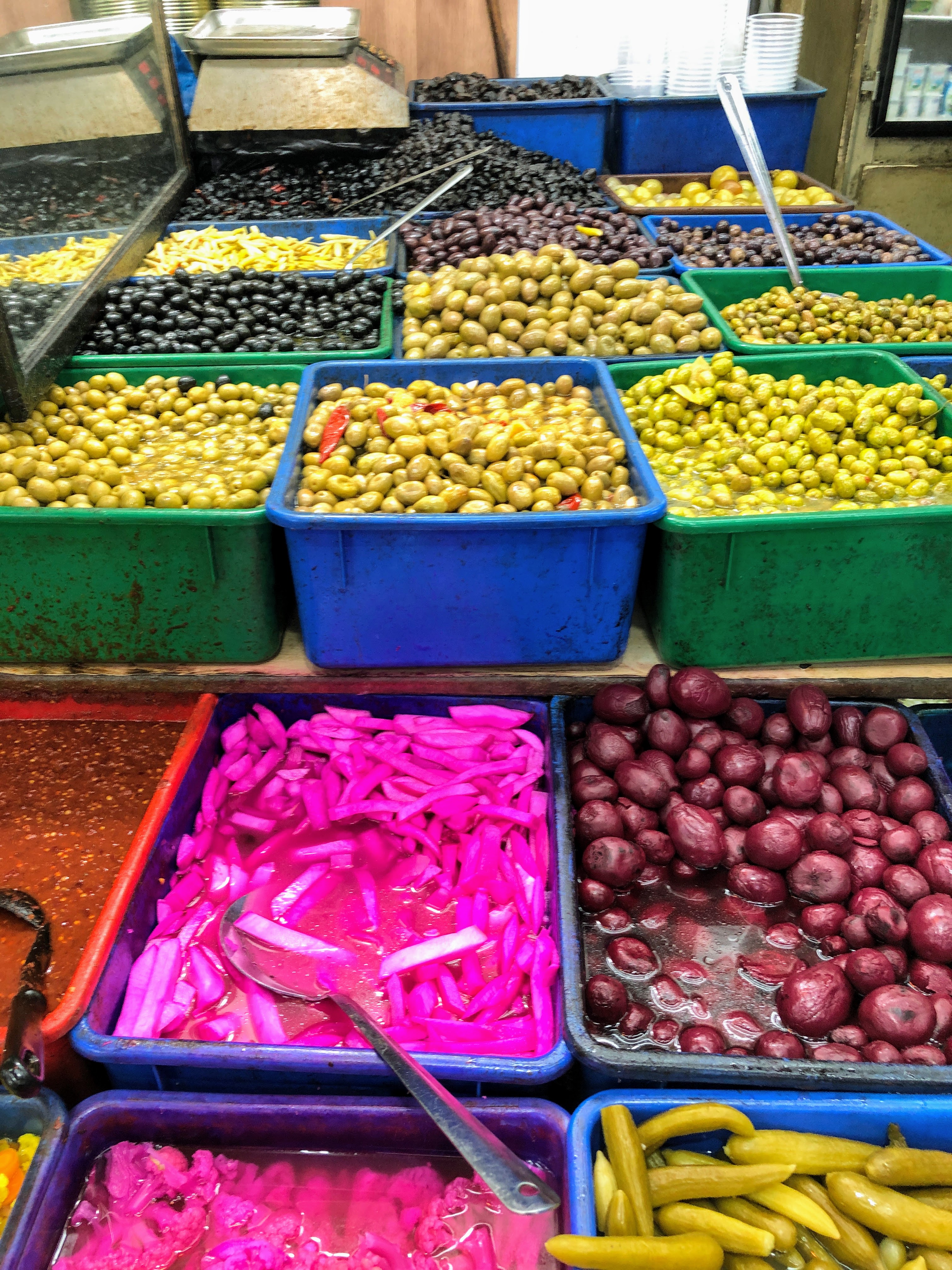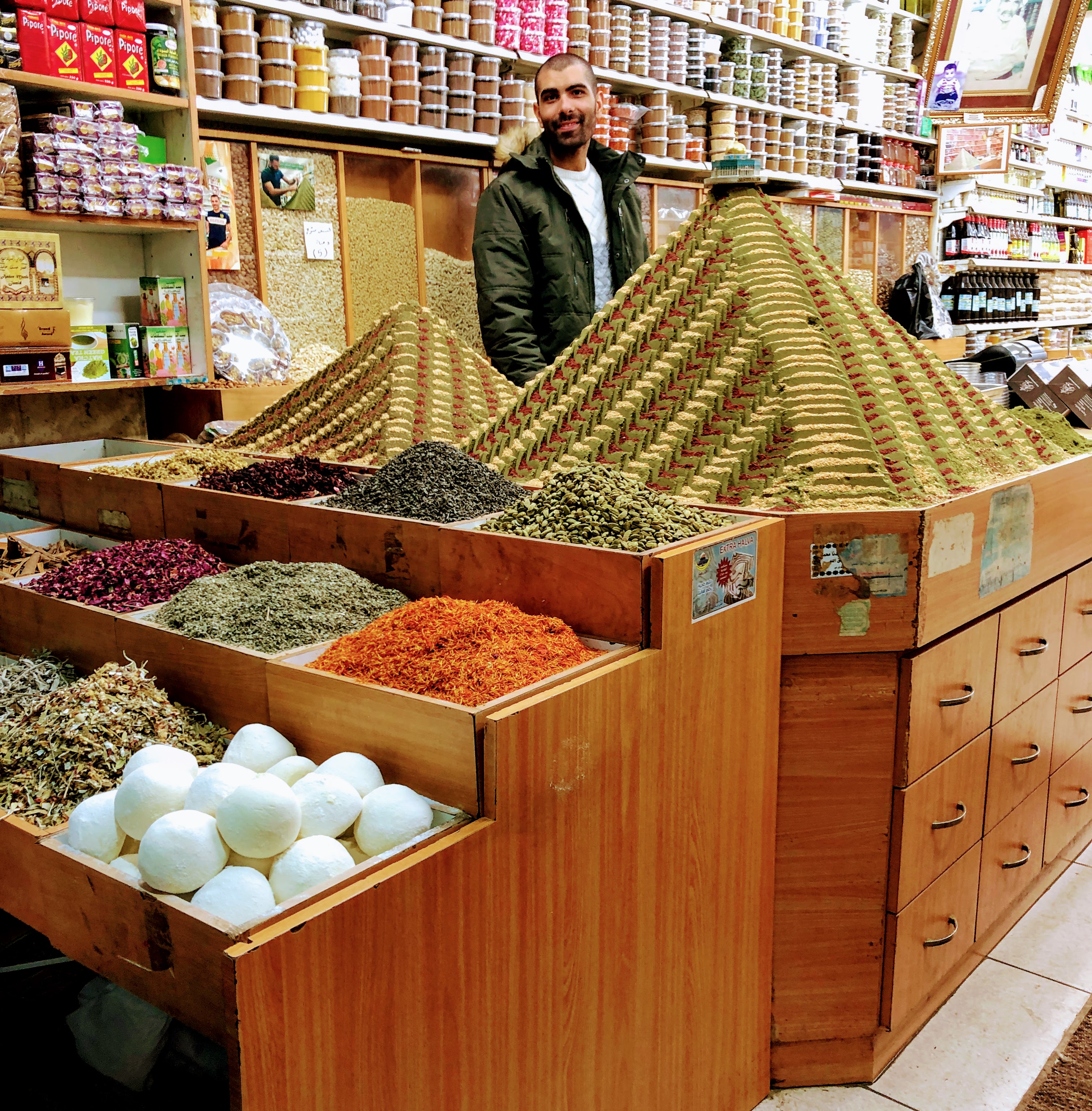 We joined walking tours which made the buildings and streets come alive, we sat and absorbed the atmosphere as the church bells rang and the calls to prayer echoed out and enveloped the city. We pondered the quiet and empty streets on Friday evening as much as we smiled at the lively, awakened city on Saturday night. In order to indulge in the whole spectrum of the city, and the fact that there is limited restaurants open in the Old City, we decided to pop into the Armenian Tavern on Friday night as the Armenians are the least ruffled about religious protocols and found ourselves having quiet dinner in an ornately decorated, chandelier filled cavern where I read these words “from the unkind cup of history, they have drunk wisdom, not bitterness”. Happening upon a group of students who wandering around on the plaza who took the opportunity to burst into an impromptu performance! Joining groups of people indulging in late night shakshuka. Participating in the bursting, joyous, vibrant street-scapes at sundown. But for me Jerusalem is a memory of smells and tastes. I walked around with my eyes almost bulging at the sights but it was the piles of spices, the varieties of olives, the exquisite flavours that captured my heart. Most of what I indulged in I had experienced before, but partaking of it upon the land on which it’s grown and harvested was something unexpected. When food tells a story it becomes an indelible memory. It was as if my taste buds were hyped up and everything was amped up – I was taken a little unawares.