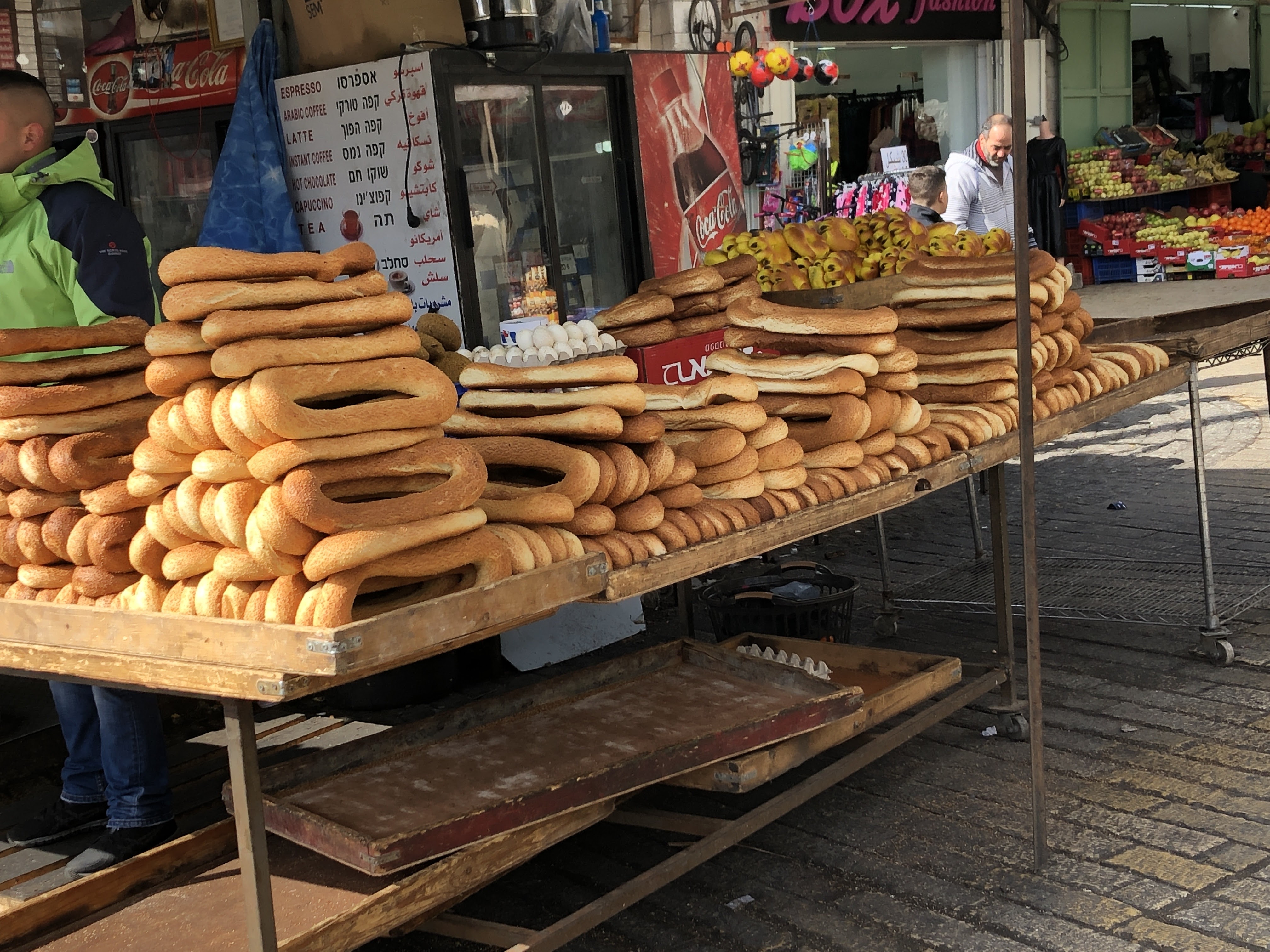 We decided to spend the majority of our time in the old city, listening to the sounds, eating the food, enjoying the aromas of savoury and sweet and the unique combinations of these two that at times can confuse the palate. The iridescent orange knafe with sheep’s cheese, and a sweet syrup sprinkled with neon green pistachios is a popular favourite sold on street corners along with Jerusalem bagels, falafel, halva, and sacklav, pomegranate juice and mint tea.