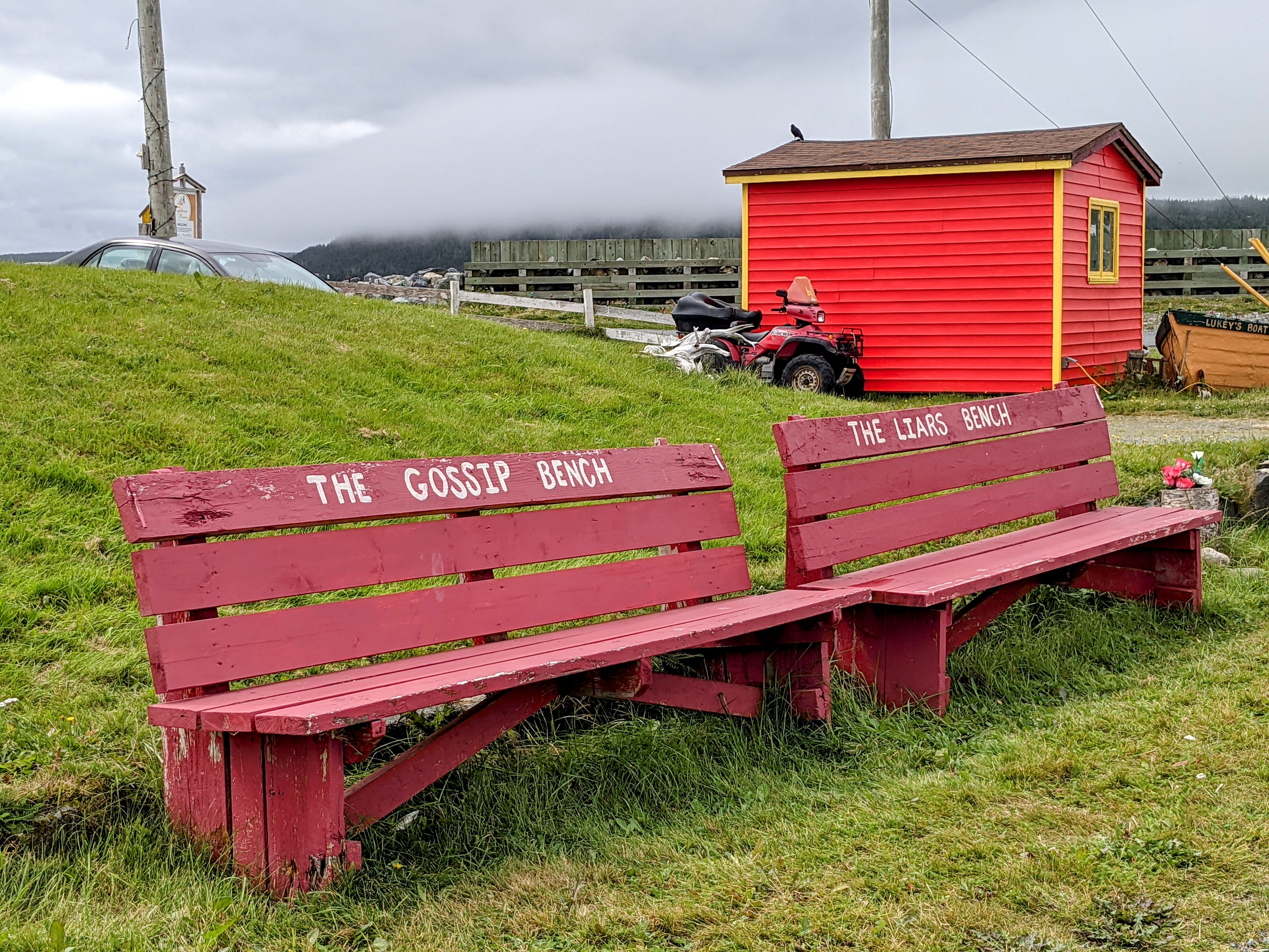 In the 1980s people (archeologists) started scraping off the surface of Ferryland to uncover a colony , The Colony of Avalon, because it seems that there were people there long before we decided to head there for a cup of tea on an afternoon. As it turns out this is big stuff. There was a settlement there in the 17th century and it changed hands from time to time as the English and French duked it out and now the lovely guides parade you down mainstreet of town pointing out a loo that was flushed with the tides, remains of homes, a forge, a cobblestone street and other things of interest. The museum has beautiful and well appointed displays of thousands of artefacts that were uncovered at the dig. On the way to the site from the museum there is a bench of your choice to catch a breather and a kitchy Purity garbage bin to dispose of your napkin after you have finished devouring your light and fluffy raisin bun from the kitchen of the cafe. There is a lighthouse that offers picnic lunches to be enjoyed on the cliffs, but be sure to book ahead as this is a very popular outing and there are no leftovers to be had. If it is a spur of the moment day trip, the cafe makes the best soup, biscuits, and full meals. Do not miss the desserts. The other option offered in Ferryland is the super popular dinner theatre. Check it all out. In all honesty, one of the surprising things that kept popping up on this trip is the fact that many of these super interesting, super fascinating places across the island were not really well known and not really researched, dug into and exposed to the general public for observation until the 1970s and 80s. What?!? What took so long? Anyway, I was super happy to be able to do a bit of tourism in my home province.