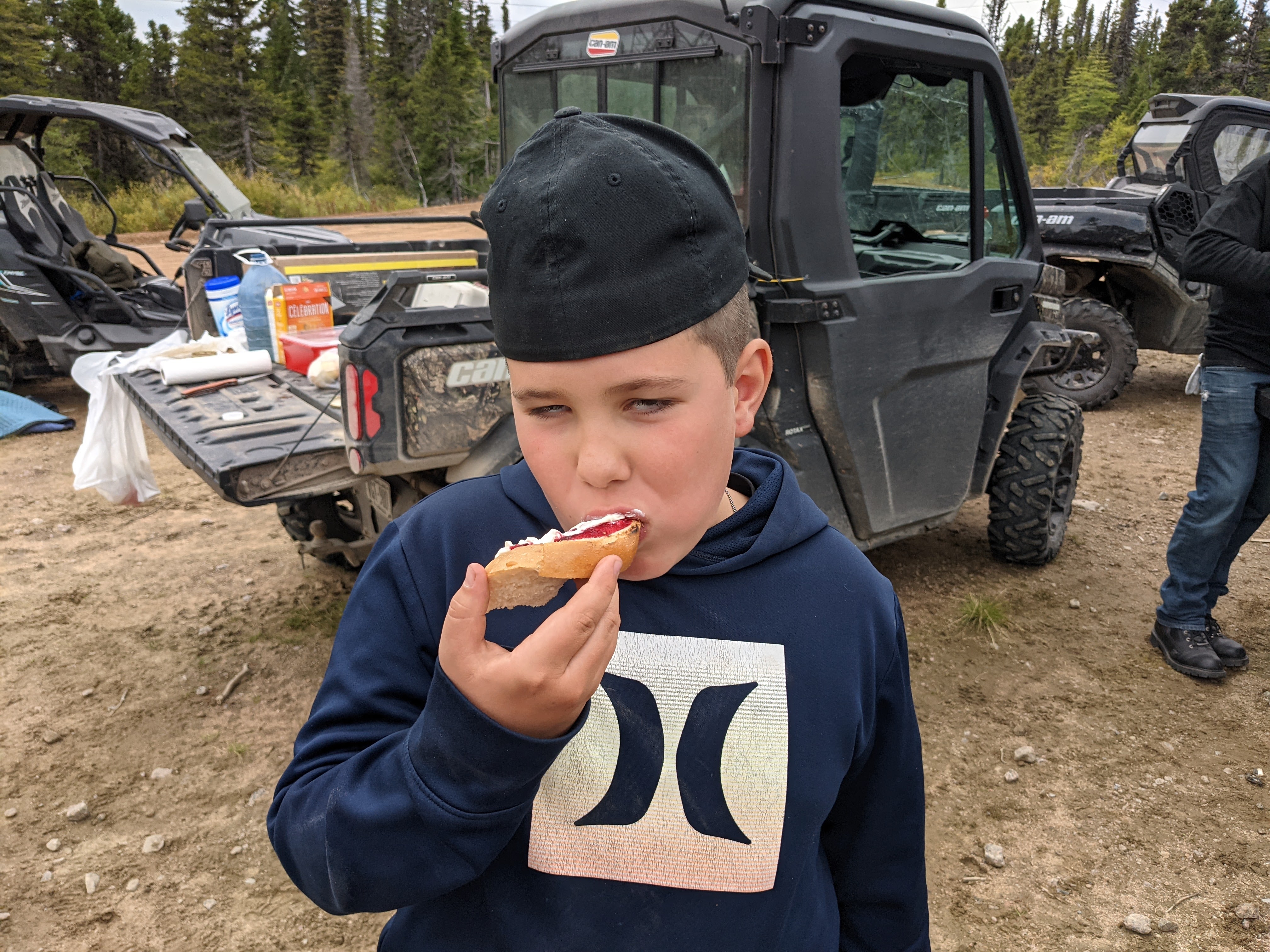 This is my husband’s childhood home. (I didn’t ever get to Labrador until the year after we were married.) He left when he was six but his parents promised him he could return every summer. And he did until his was 17. He lived with his buddy’s family every summer playing on its shores, in its bush country and along its rivers and those friends remain close even now. The day after we arrived was a holiday so we packed up food, climbed onto the side-by-sides and took off into the country. What a time!