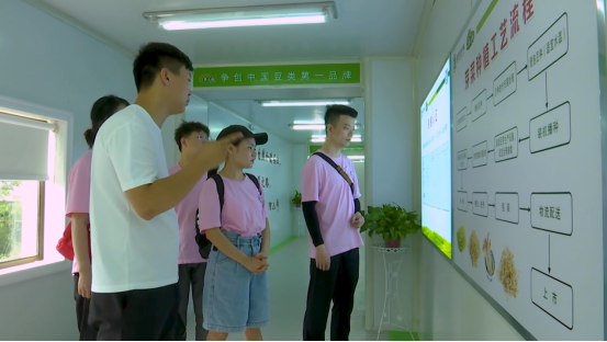 为切实了解“流芳豆品”的生产制作工艺,实践队参观了位于流芳豆香产业园的鑫农康食品有限公司,走进豆芽生产车间,观看了豆芽从选豆泡豆到育苗,再到清洗打包的完整生产链,采访了一线工人,深入了解了黄豆、绿豆、豌豆、花生等各类豆苗不同的生产工艺。在与企业负责人交流中了解到,该企业专注于豆类健康食品,他们将传统工艺与现代智能生产紧密结合,联合省农业专家,制定了江西省芽苗菜生产车间建造标准,为百姓吃上放心可口的芽苗菜保驾护航。