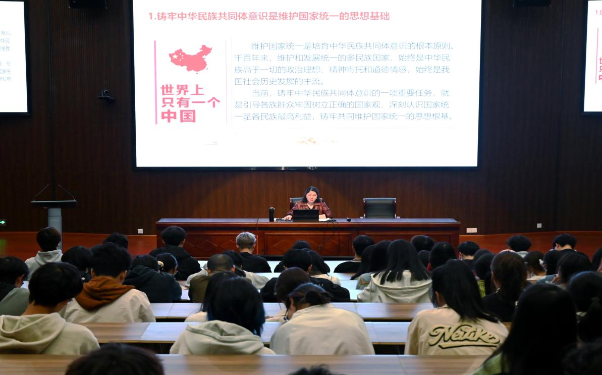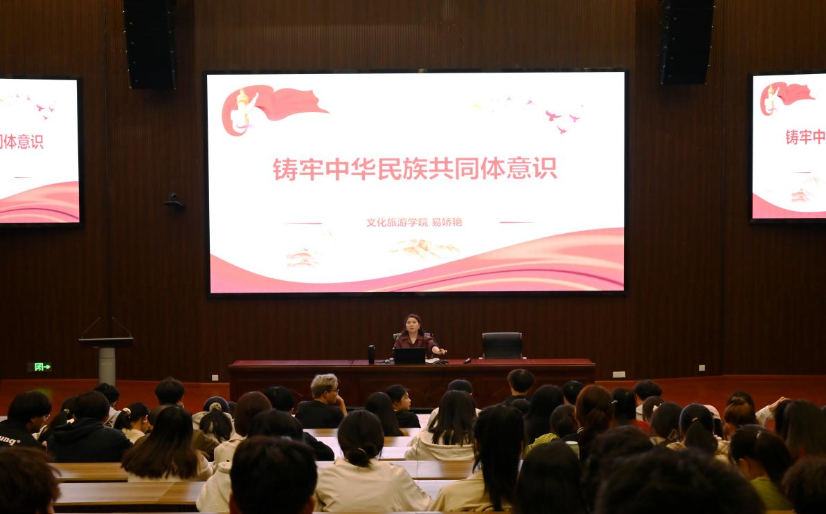 在讲座尾声,易娇艳深情寄语文旅公司的同学们要自觉地肩负起维护国家统一、促进民族团结的历史使命,将中华民族共同体意识内化于心、外化于行。在未来的学习和工作中,坚守中华文化立场,讲好中国故事,传播好中国声音,展现可信、可爱、可敬的中国形象,为中华民族伟大复兴的中国梦贡献智慧和力量。