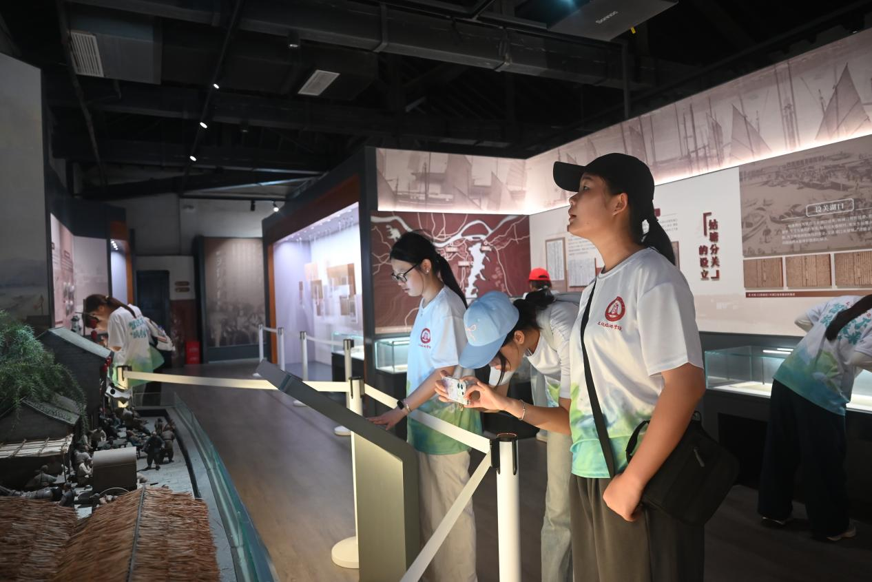 被誉为“万里茶道第一关”的九江姑塘海关,在明清时期是重要的茶叶贸易关口,也是南来北往茶叶运输的关键枢纽。队员们怀着崇敬的心情步入海关旧址陈列馆,细细品味每一件展品背后的故事,深入了解古代茶叶贸易的管理制度、关税征收的严谨流程,以及茶商们风雨兼程的往来经历。斑驳的砖墙诉说着19世纪茶叶贸易的辉煌,展柜中陈列的文物仿佛将人们带回那段中外文明交流互鉴的岁月。通过参观学习,队员们深刻认识到九江在中国古代茶市中的重要地位,也对“万里茶道”这条横跨欧亚大陆的商贸大动脉有了更加直观和鲜活的认识。