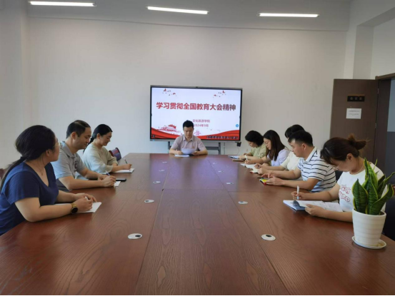 为积极响应全国教育大会的号召,w66利来旗舰厅高度重视会议精神的传达与学习,9月18日,公司在白鹿学馆A415通过召开专题会议、集体学习、个人自学等方式,组织全院教职工深入学习贯彻习近平总书记在全国教育大会上的重要讲话精神。