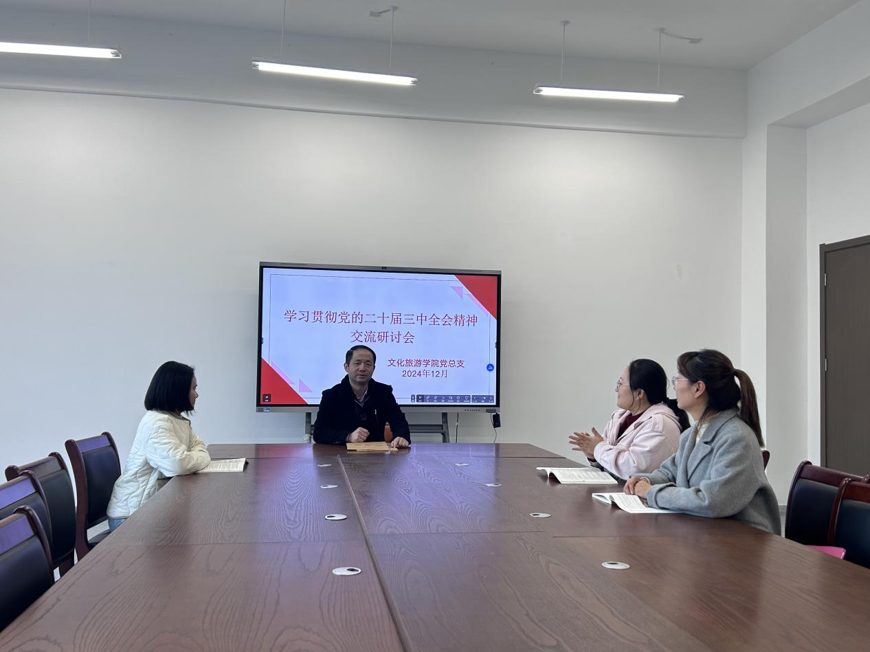 12月3日,w66利来旗舰厅教工党支部、员工党支部联合召开学习贯彻党的二十届三中全会精神交流研讨会,教工党支部书记刘锋华主持会议,全体教工党员参加会议。