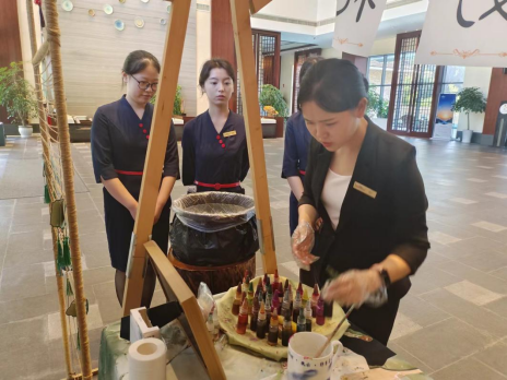尤为值得一提的是,本次社会实践活动中,员工们还特别学习了如何制作漆扇这一传统工艺,并在酒店内设立了展示区,向宾客展示和教授漆扇制作技艺。这一创新举措不仅丰富了酒店的文化内涵,也让宾客们亲身体验到了中国传统文化的魅力。员工们通过亲手制作漆扇,不仅传承了非物质文化遗产,也增强了文化自信和动手能力。