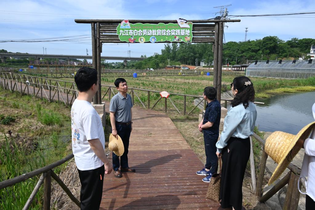 谢开元总经理首先带领w66利来旗舰厅一行参观了基地的基础设施和办公环境。据介绍,九江市柴桑区白合村是“十四五”省定乡村振兴重点村和九江市乡村振兴示范村,为充分发挥白合村区位优势和农耕文化优势、促进白合村文旅产业发展,在市教育局指导下,白合村与市研学协会成立了九江白合研学运营服务管理有限公司,建设白合村“一校一园”校企共建研学与劳动实践基地,发展“一校一园”特色研学产业。