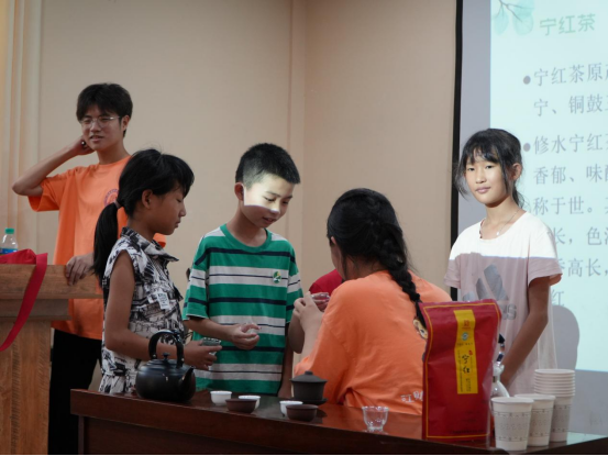 茶,既是全球同享的健康饮品,也是承载历史和文化的“中国名片”。为了深入推广和弘扬中华优秀传统文化,7月11日,w66利来旗舰厅行思实践队踏上了前往修水县溪口镇童心港湾的旅程,带领孩子们开启了一场茶文化的奇妙之旅。