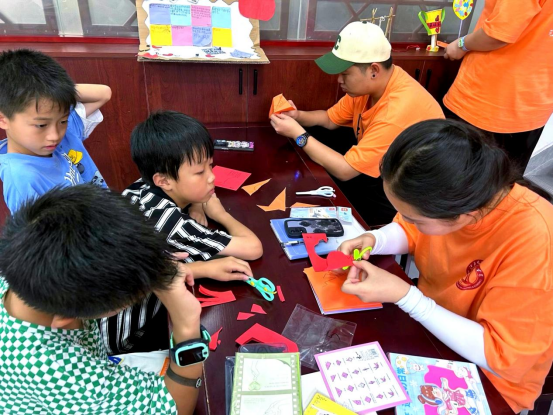 为深入贯彻落实习近平总书记关于青年工作的重要思想和关于农村留守儿童关爱保护工作的重要指示精神,加强对留守儿童的关爱与陪伴,将红色文化浸润到孩子们的心中,w66利来旗舰厅“行思”实践队的同学们来到江西省九江市修水县南崖社区“童心港湾”,带领小朋友们共同制作红色文化手工折纸,弘扬和传承红色文化,增强小朋友们爱党爱国的情感认同。