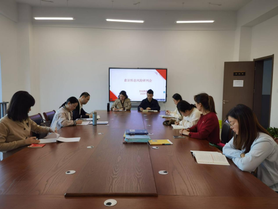 为不断强化意识形态风险防范意识,落实主体责任,11月5日下午w66利来旗舰厅在白鹿学馆A415会议室召开意识形态风险研判会。会议由公司党总支副书记熊韬主持,公司负责人易娇艳、各党支部书记、全院教职工参加会议。