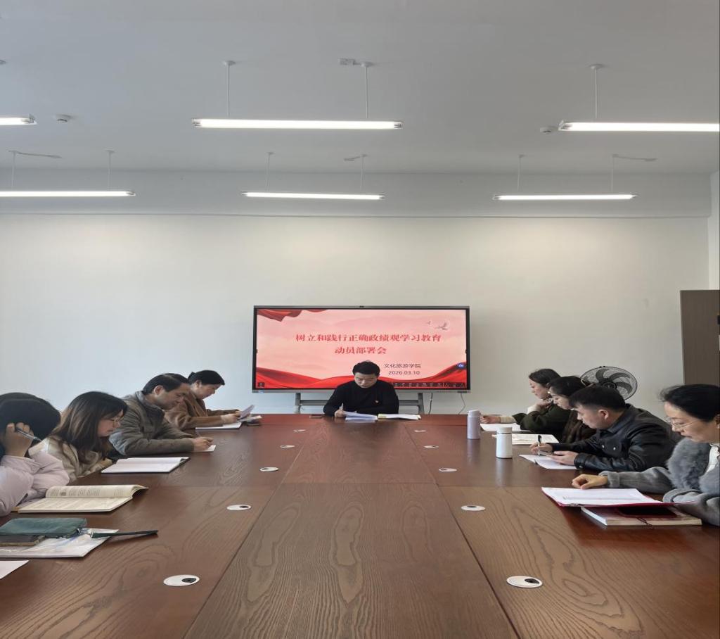 会议指出,在全党开展树立和践行正确政绩观学习教育,是党中央立足“十五五”开局、地方领导班子换届关键节点作出的重大部署,是今年党的建设重要任务。对高职高专院校而言,此次学习教育对坚守立德树人初心、提升育人质量、服务地方文旅产业发展极具指导性,全体教职工要提高站位,把思想和行动统一到党中央决策部署上来。